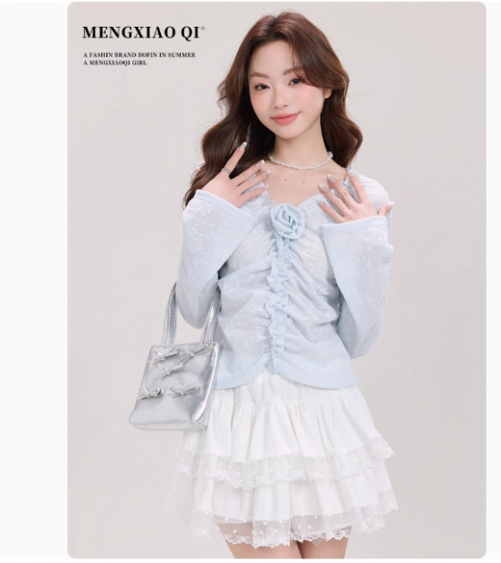 蒙小柒法式别致蓝色长袖衬衫女春季设计感雪纺衫修身显瘦甜美上衣